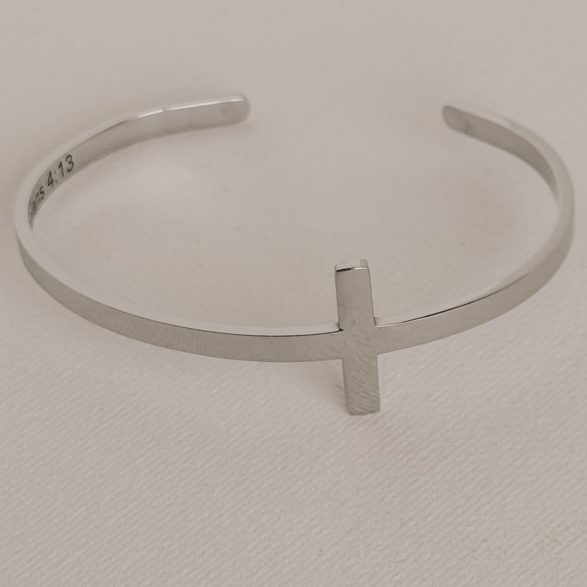 Crafted from premium stainless steel, this cross cuff bracelet features the inspiring scripture Philippians 4:13, a powerful reminder of inner strength and faith.